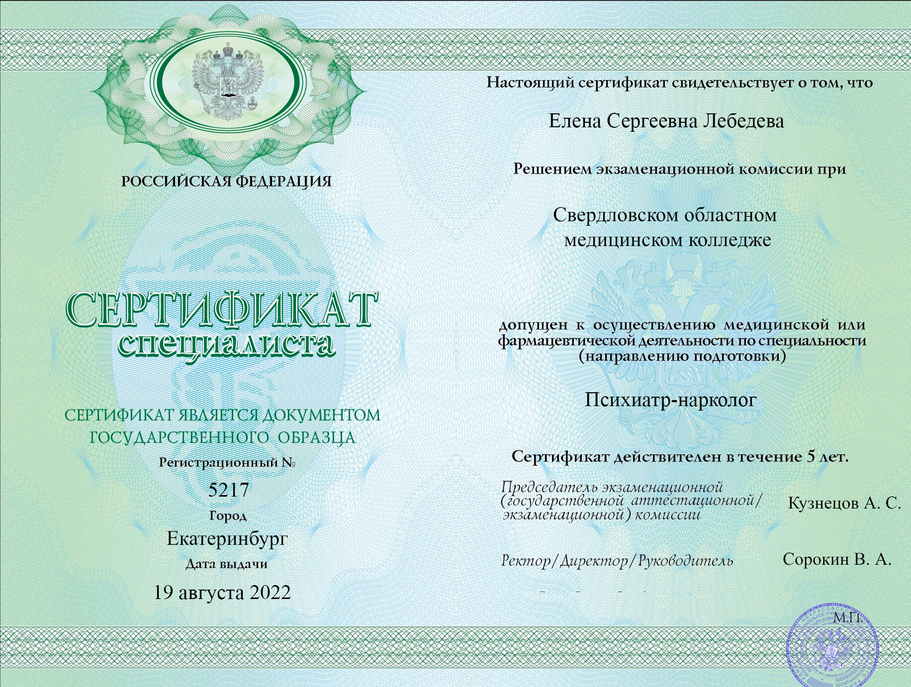 Елена Сергеевна Лебедева врач нарколог клиники доктора Стукаловой в Острове